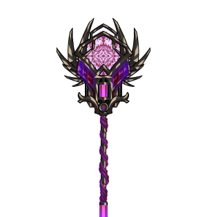 A staff of heartbreak and malice. The magic circle coveted by bladed wings continuously casts a spell that haunts your despised object of affection with lightning strikes. (Click to transform)